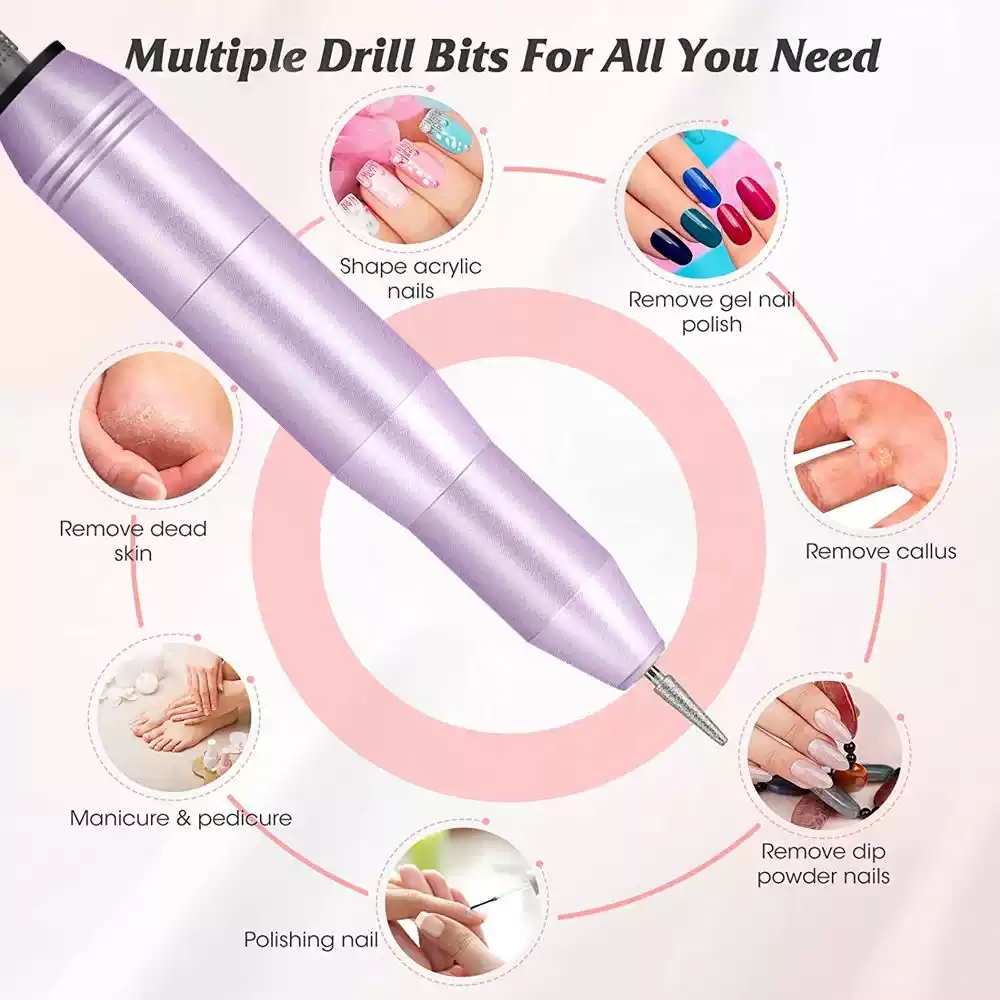 Drill Set: Includes multiple attachments for varied nail care needs.